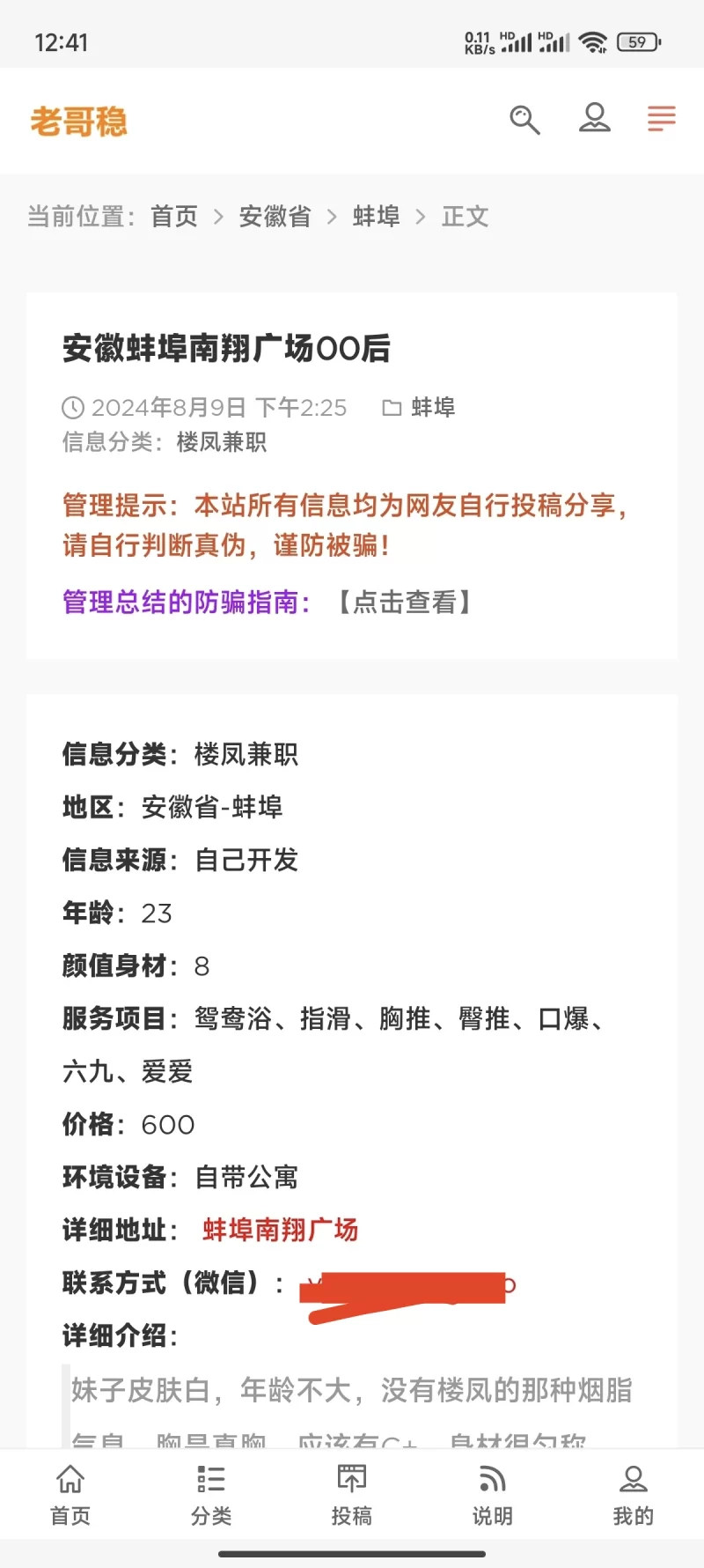 信息分类:楼凤兼职